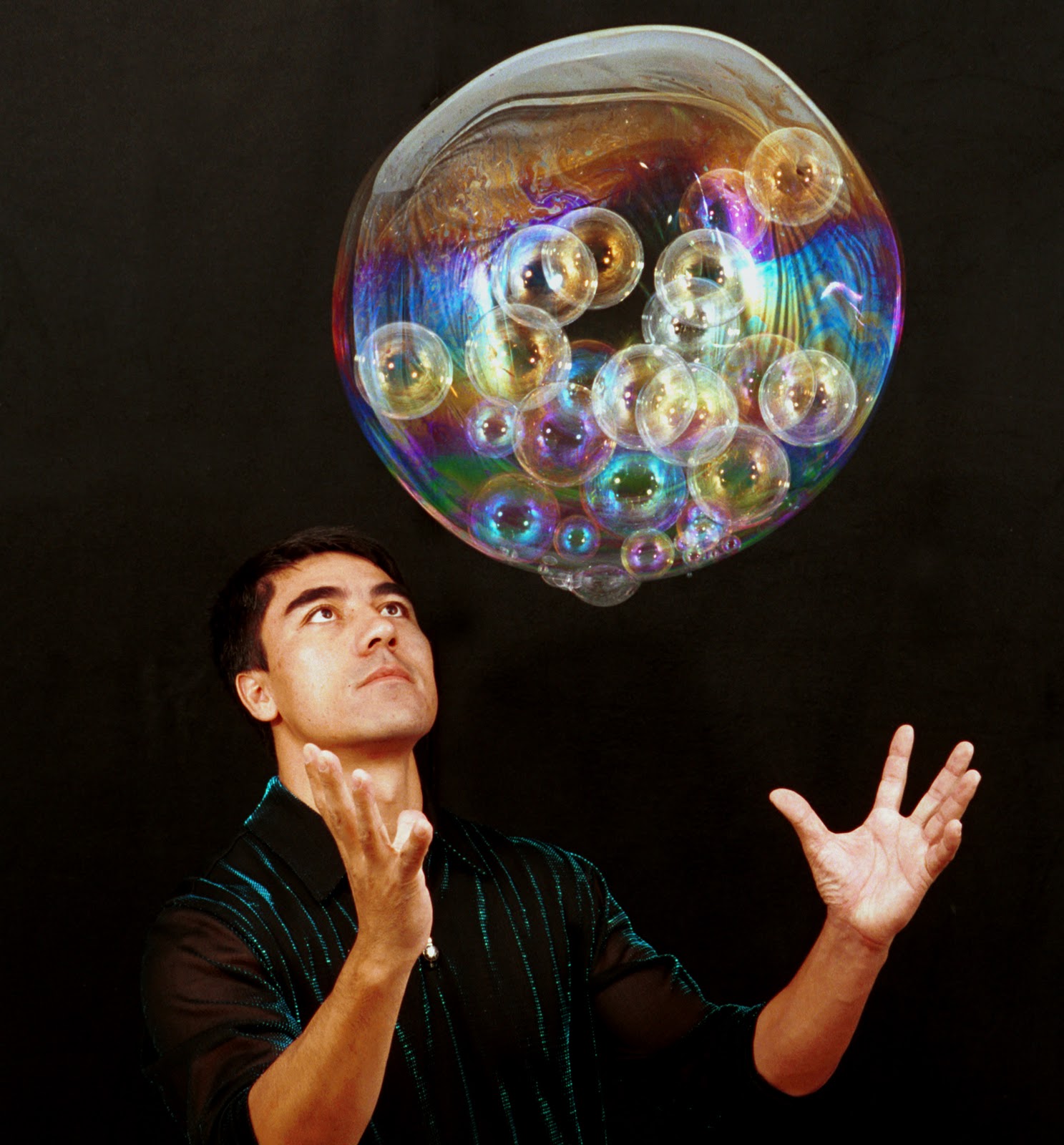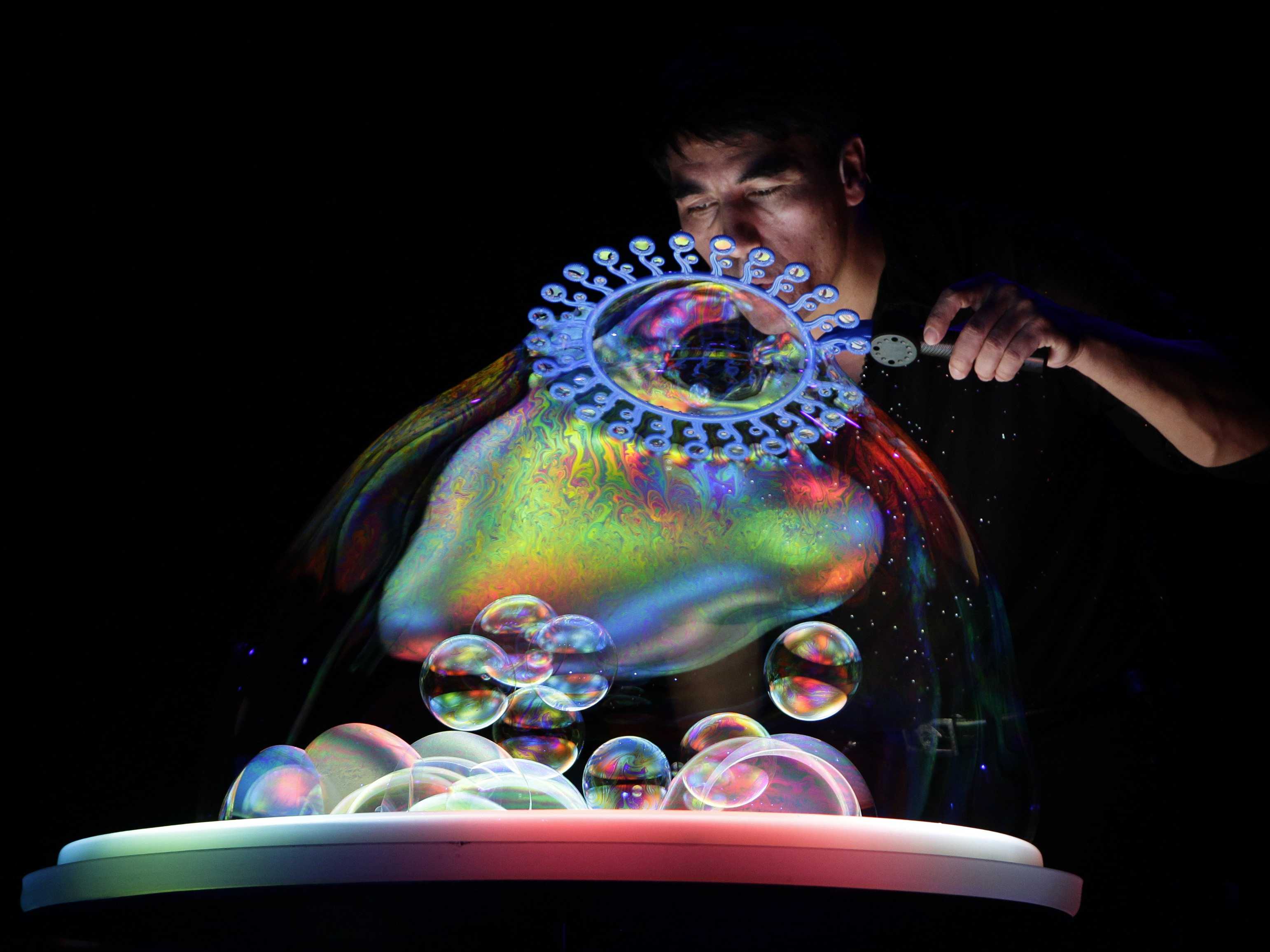 今天要为大家介绍的,是世界顶级泡泡表演艺术世家,Fan Yang一家:Fan Yang、妻子Ana、儿子Deni、女儿Melody和弟弟Jano。其中,爸爸Fan Yang被誉为“世界泡泡第一人”,他是世界上首屈一指的泡泡科学家、艺术家和表演家,他的一生几乎都在研究泡泡的制造工艺和表演艺术。是他将科学和艺术完美的融合在一起,将看似简单的一颗肥皂泡玩儿成了一门绚丽的表演艺术。