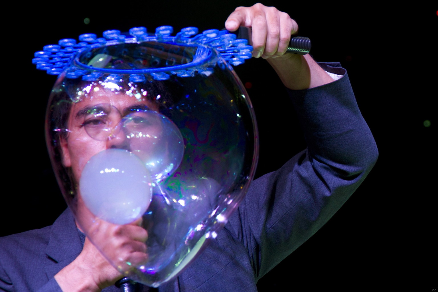 4年以后,他卷土重来,打破了自己的记录,制造了一个能装下181个人的巨型大泡泡。